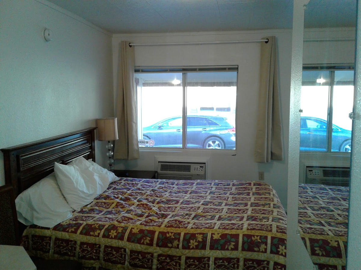 The woman that helped us was incredibly kind and nice. We got in late that night (10 or 11 pm local time) and she was still awake to greet us and help us check in. When we called, she noticed the area code and updated us on the weather we could expect on our journey. Cash or card accepted The room was surprising for the price! Queen size bed, gas stove, full size refrigerator, complete working kitchen, nice furniture, etc. For the price we typically pay, we're used to grungy run-down rooms that don't feel safe or clean. This is NOT the case here. The effort put forth is evident. The motel is located just inside a small town right off of I-15. There isn't a large sign way up high in the air, and it isn't right off of the highway or main road, so you won't find this place just driving by. Any GPS service will bring you right to the door. It is located near residential, so don't worry that you might be lost if you see houses. Final little fun note: they have an adorable sweet cat. Very vocal (but not loud), very sweet, and will walk right up to you for petting. This cat is the perfect mascot for the motel. Friendly, sweet, and caring.